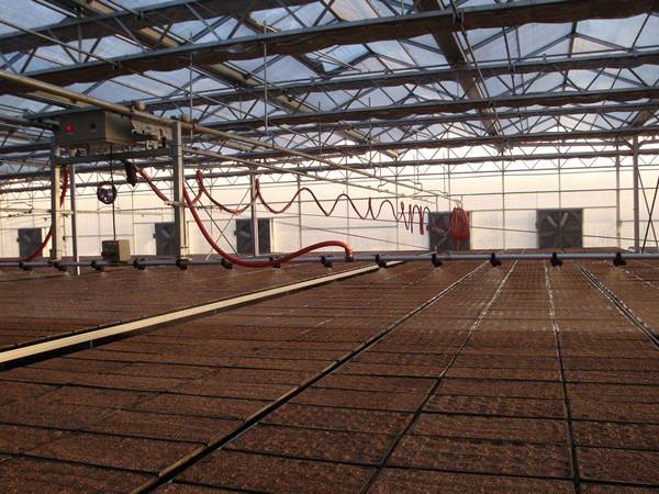 Our greenhouse sprinkler system mainly includes sprinkler heads, operating orbit, transfer orbit and host. Commonly, each greenhouse need to install a set of sprinkler orbit and supported by a host. If one machine is used in multiple greenhouses, the transfer vehicle and transfer track are necessary. As a manufacturer, we offer multi-angle of sprinkler heads and mister head is available.